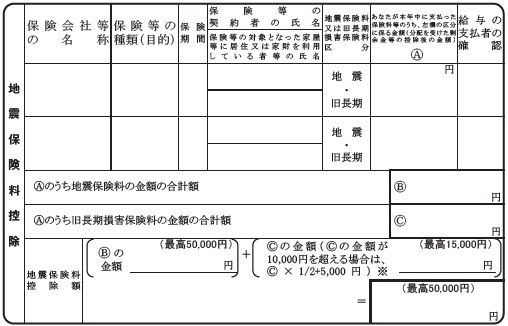 地震保険料控除は、保険料控除申告書右上の「地震保険料控除」欄に記入します。