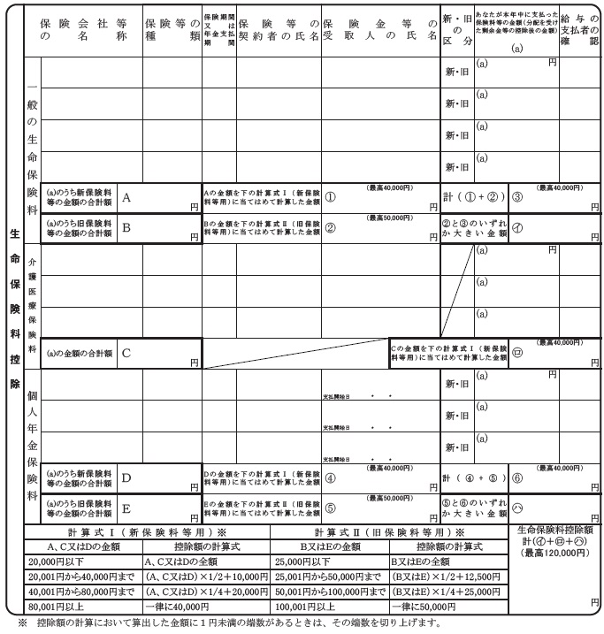 生命保険料控除は、保険料控除申告書の左側にある欄に記入します。