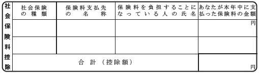 したがって、申告書に記入が必要なのは、国民年金や国民健康保険などを自分で支払った場合や、生計を一にする家族の分を本人が負担している場合などに限られます。