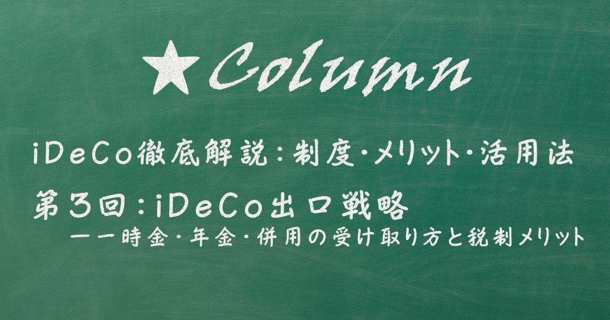 和歌山の税理士、和田全史です。いつも当ブログをお読みいただきありがとうございます。これまで「iDeCoの基本」と「制度比較」を解説してきましたが、いよいよ今回は「出口戦略」のお話です。一時金と年金、どちらを選ぶか――答えは一つではありません。税制上の控除の仕組みや受け取りのタイミングによって、手取り額は大きく変わります。